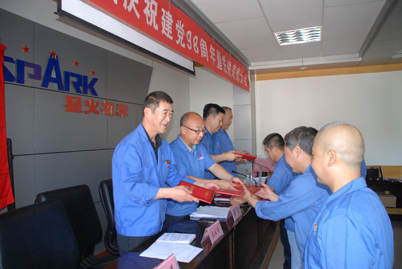 姚保忠說,今天我們在這里召開慶祝建黨98周年暨2018—2019年度先進表彰大會,更是“不忘初心、牢記使命”主題教育活動的啟動和動員大會,主要目的是以習近平新時代中國特色社會主義思想為指導,進一步動員全體黨員投身到為星火脫困,重塑輝煌的事業(yè)當中,振奮精神,開拓進取,扎實工作,努力把生產經營和黨建工作同促共進,高質量發(fā)展黨建,為星火機床的持續(xù)發(fā)展努力奮斗。