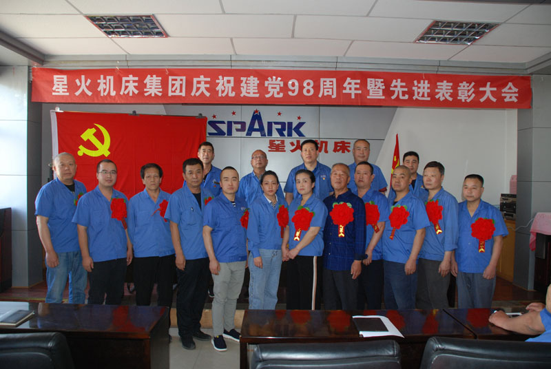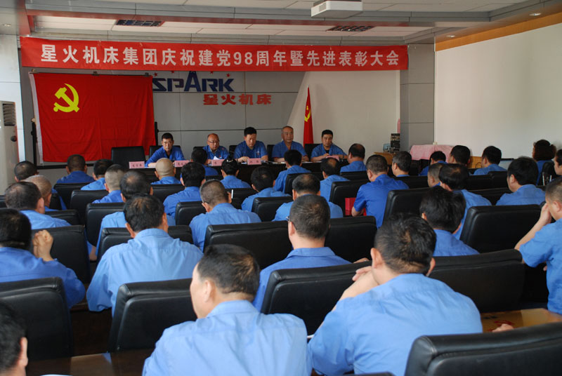 7月1日,在中國共產黨建黨98周年之際,星火機床公司在大會議室隆重召開慶祝建黨98周年暨2018—2019年度先進表彰大會,紀念黨的生日,重溫入黨誓詞,為獲得示范黨支部及先進黨支部的集體授牌,向李清錄等16名被評為優(yōu)秀共產黨員稱號的黨員頒獎。黨委專職副書記、紀委書記、星火機床集團公司副總經理、工會主席蔣俊發(fā)表講話,對下一步黨建工作提出要求。