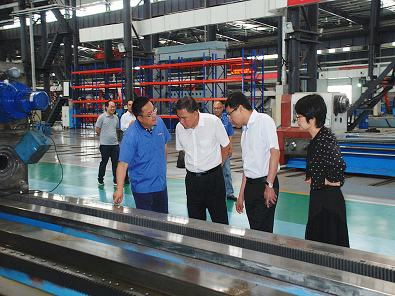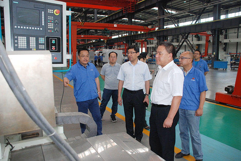 在蔣保權、蔣俊等領導的陪同下,劉軍一行深入企業生產現場,參觀了重型、大型、數控產品,了解了企業目前生產經營情況和產品研發、市場銷售等,重點了解了企業境外投資規模、效益及需要協調解決的問題。蔣保權詳細介紹了公司境外投資及收益情況。