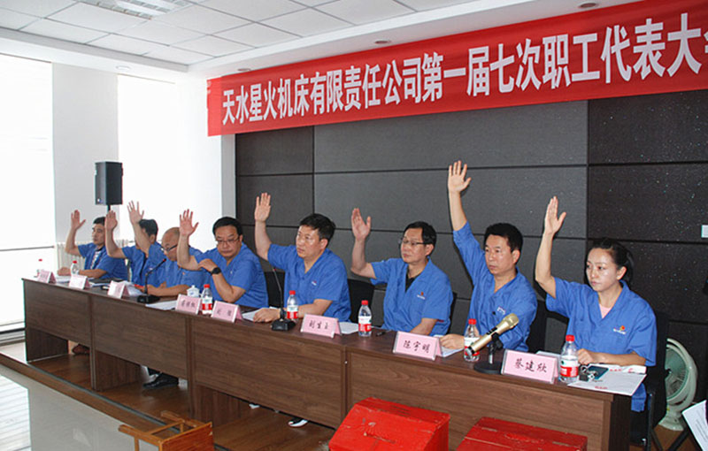 8點(diǎn)30分許,主席團(tuán)成員在主席臺就座。蔣俊宣布天水星火機(jī)床有限責(zé)任公司第一屆七次職工代表大會開始。全體起立,奏唱國歌。
