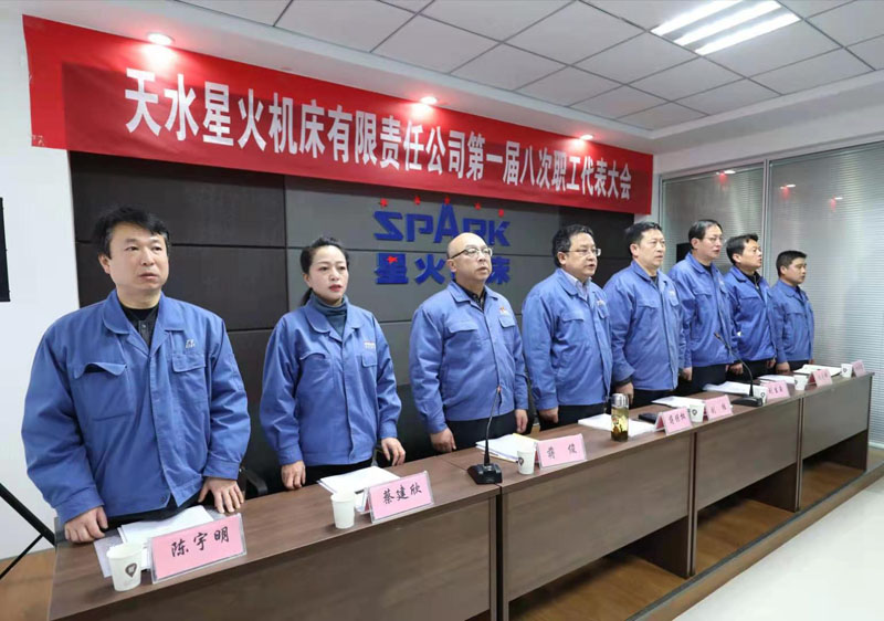 8點30分,主席團成員在主席臺就座。蔣俊宣布天水星火機床有限責任公司第一屆八次職工代表大會在雄壯的國歌聲中開幕。