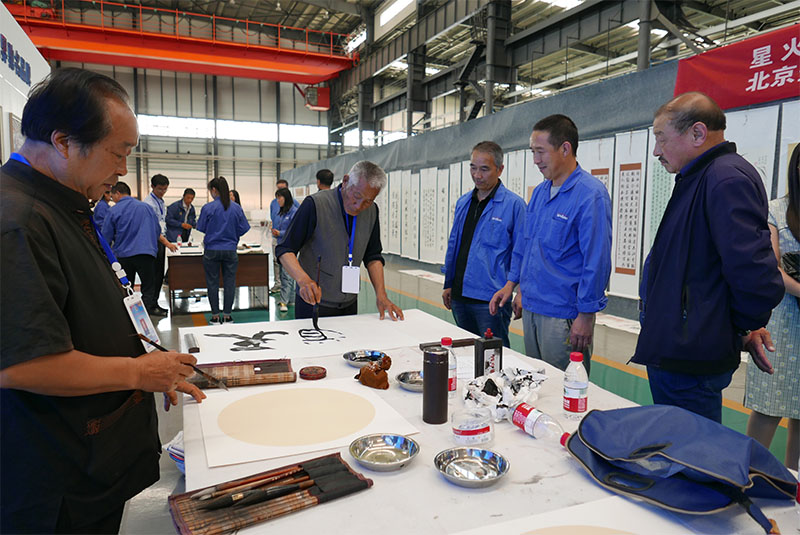 在中國(guó)共產(chǎn)黨建黨一百周年來(lái)臨之際,為推進(jìn)企業(yè)“學(xué)黨史、強(qiáng)黨性、促發(fā)展”活動(dòng)深入開(kāi)展,帶動(dòng)廣大黨員和職工群眾勇躍參加建黨百年慶祝活動(dòng),以多種形式歌頌黨的豐功佳績(jī),表達(dá)對(duì)黨的崇敬和熱愛(ài)。5月12日,星火機(jī)床集團(tuán)公司隆重舉辦慶祝中國(guó)共產(chǎn)黨建黨100周年黨史學(xué)習(xí)教育“黨在我心中”職工書(shū)畫(huà)作品展,并邀請(qǐng)北京當(dāng)代翰墨文化藝術(shù)院甘肅分院有關(guān)領(lǐng)導(dǎo)和老師現(xiàn)場(chǎng)創(chuàng)作書(shū)畫(huà),為公司各級(jí)勞模送字、送畫(huà),活動(dòng)現(xiàn)場(chǎng)熱烈而有序。
