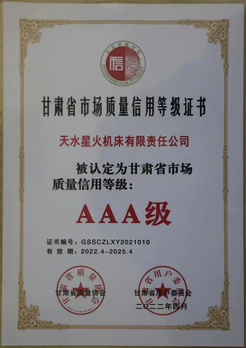 多年來,星火機床公司以質量興企、質量強企為目標,堅持“全員的工作對下序負責,全部的產品使顧客滿意,永保質量體系不斷完善,永遠追求產品質量的更高水平”的質量方針,通過設立質量控制點、召開質量誓師大會、堅持開展“質量月”活動等多種形式,褒揚質量先進,樹立質量典型,營造“企業(yè)在我心中,質量在我手中”的良好氛圍,提升全員質量意識和產品質量水平,取得了較好效果。公司在全省企業(yè)質量信用等級評價中多次被評定為AAA級企業(yè),當選中國機械工業(yè)質量管理協會第八屆理事單位,產品質量在用戶中受到好評,企業(yè)影響力不斷增強,競爭力持續(xù)提升,為實現高質量發(fā)展奠定了良好基礎。
