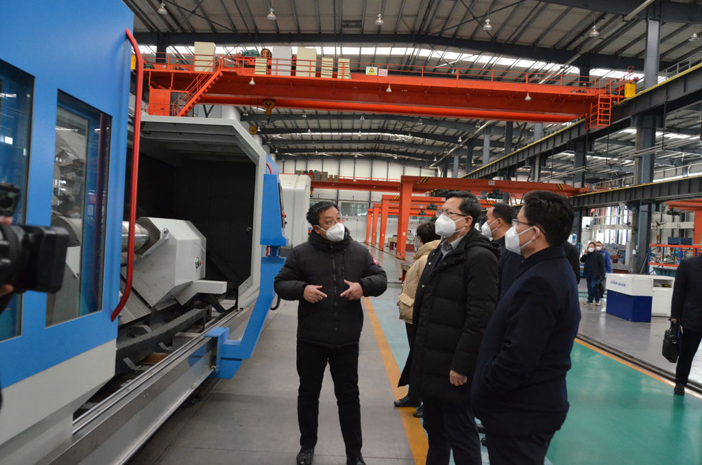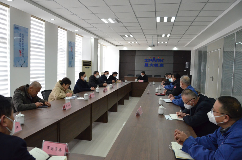 蔣保權(quán)向成廣平一行詳細(xì)介紹了公司的歷史沿革、產(chǎn)品研發(fā)、生產(chǎn)經(jīng)營及未來發(fā)展規(guī)劃等情況。蔣保權(quán)說,近幾年,星火機(jī)床緊盯國家戰(zhàn)略需求,瞄準(zhǔn)軍工、航天航空、新能源、鋼鐵、船舶、工程機(jī)械等行業(yè),在攻克關(guān)鍵領(lǐng)域核心技術(shù)、解決 “卡脖子”難題等方面做了不少工作,公司自主研發(fā)的多軸聯(lián)動(dòng)數(shù)控纏繞機(jī)床形成了行業(yè)標(biāo)準(zhǔn);借助法國索瑪子公司技術(shù)優(yōu)勢(shì),聯(lián)合武漢理工研發(fā)生產(chǎn)的五軸聯(lián)動(dòng)復(fù)合加工中心性能達(dá)到國際標(biāo)準(zhǔn),基本實(shí)現(xiàn)替代進(jìn)口。同時(shí),為進(jìn)一步做大做強(qiáng)做優(yōu)企業(yè),戰(zhàn)略重組了青海青重,一些促進(jìn)企業(yè)實(shí)現(xiàn)高質(zhì)量發(fā)展的智能化、綠色化轉(zhuǎn)型升級(jí)項(xiàng)目如機(jī)床研發(fā)設(shè)計(jì)檢測(cè)能力提升項(xiàng)目也逐步實(shí)施。如果能加入更強(qiáng)的國企平臺(tái),星火將會(huì)有更廣闊的發(fā)展前景。
