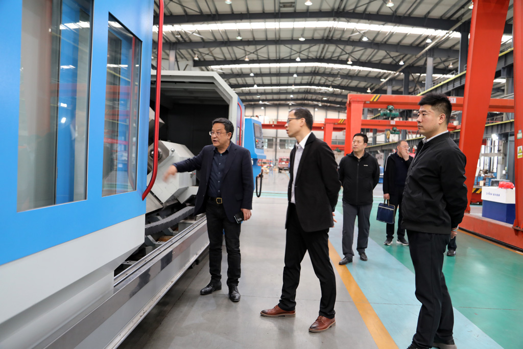 蔣保權(quán)向李強一行詳細(xì)介紹了企業(yè)的歷史沿革、生產(chǎn)經(jīng)營狀況,以及科技創(chuàng)新、項目建設(shè)等情況。他結(jié)合國內(nèi)外環(huán)境分析了機床行業(yè)未來發(fā)展趨勢,重點介紹了星火機床公司適應(yīng)時代發(fā)展要求,研發(fā)生產(chǎn)的大型五軸聯(lián)動車銑復(fù)合加工中心、多軸數(shù)控纏繞設(shè)備等諸多處于行業(yè)領(lǐng)先地位的產(chǎn)品。他說,國家將“工業(yè)母機”定義為現(xiàn)代化體系的核心樞紐。星火機床將發(fā)揚“三線”企業(yè)的奉獻(xiàn)和拼搏精神,為用戶解難題,為大國鑄利器,在打破國外壟斷桎梏繼續(xù)努力。