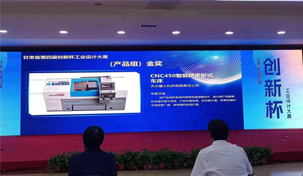6月20日,甘肅省第四屆“創新杯”工業設計大賽頒獎儀式在蘭州市舉行,星火機床公司產品CNC450智能精密臥式車床榮獲產品組金獎。