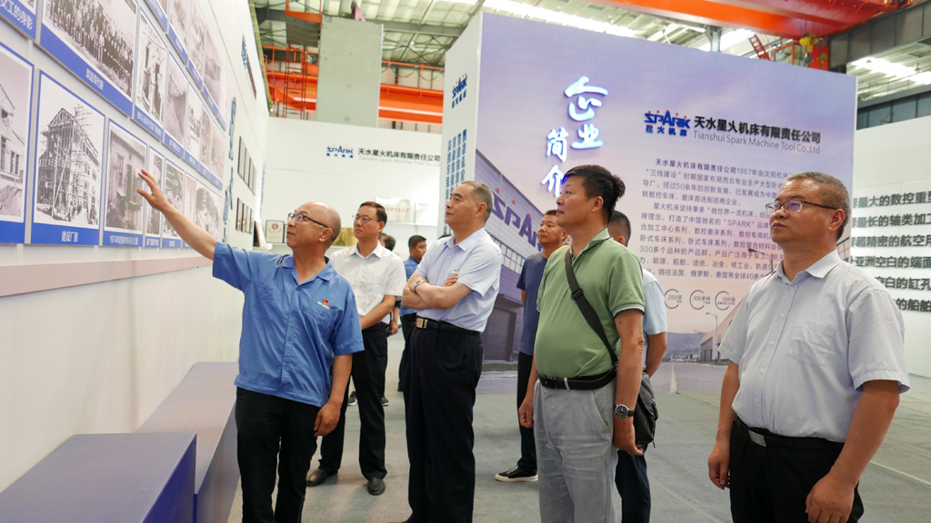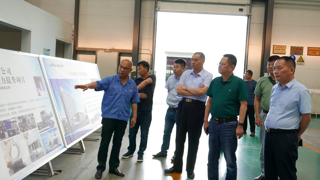 在星火機床公司裝配生產現(xiàn)場,孫昌春一行聽取了集團公司黨委副書記、副總經理蔣俊關于公司生產經營、產品研發(fā)、科技創(chuàng)新、項目建設及未來發(fā)展規(guī)劃等情況介紹,參觀了公司研發(fā)生產的高端數(shù)控纏繞機床、五軸聯(lián)動機床、數(shù)控斜床身機床等產品,詳細了解了各種產品的應用領域及性能特點。