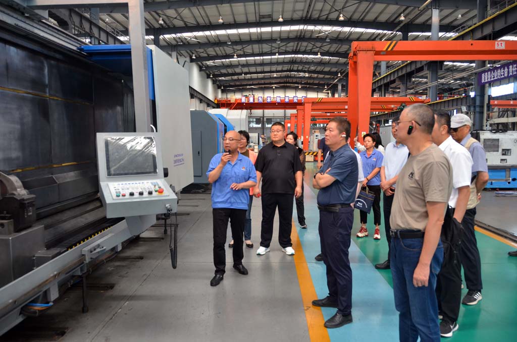 星火機(jī)床集團(tuán)公司黨委副書記、副總經(jīng)理蔣俊在陪同參觀生產(chǎn)現(xiàn)場時(shí),向前來參觀調(diào)研的客人重點(diǎn)介紹了企業(yè)發(fā)展歷程,以及公司作為國家重點(diǎn)產(chǎn)品“鏈主”企業(yè)、甘肅省高檔數(shù)控機(jī)床產(chǎn)業(yè)鏈“鏈主”企業(yè),為我國重點(diǎn)領(lǐng)域研發(fā)生產(chǎn)的高精尖產(chǎn)品、適用于有色金屬行業(yè)特點(diǎn)的大型、重型產(chǎn)品的技術(shù)水平,以及企業(yè)目前的國內(nèi)行業(yè)地位、改革改制工作,并參觀了星火機(jī)床子公司青重公司生產(chǎn)的車輪車床等具有行業(yè)領(lǐng)先優(yōu)勢的特色產(chǎn)品。
