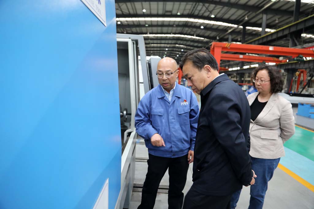 蔣俊對經(jīng)濟日報社調(diào)研組的到來表示歡迎,對經(jīng)濟日報社長期以來對星火機床的支持與關(guān)注表示感謝!隨后,簡要介紹了公司基本情況、發(fā)展歷程、產(chǎn)品結(jié)構(gòu)、技術(shù)力量、生產(chǎn)能力和項目建設(shè)等情況,陪同參觀了公司生產(chǎn)的各類重型、大型、精密數(shù)控產(chǎn)品,介紹了其性能特點、技術(shù)水平和適用行業(yè)。他說,星火公司堅持走生態(tài)優(yōu)先、綠色發(fā)展之路,立足機床裝備產(chǎn)業(yè)融合發(fā)展,大力培育先進裝備制造產(chǎn)業(yè),不斷提升產(chǎn)業(yè)層次、優(yōu)化經(jīng)濟結(jié)構(gòu),企業(yè)經(jīng)濟指標穩(wěn)中有升。他還對星火機床與青海重型實現(xiàn)強強聯(lián)合、品牌疊加,打造我國車床行業(yè)第一品牌的重要性,以及提高國產(chǎn)重型車床產(chǎn)品制造水平和市場競爭力,突破“卡脖子”關(guān)鍵技術(shù)的重要作了說明。他指出,盡管企業(yè)近幾年遇到了困難,但企業(yè)一直堅持努力拼搏,發(fā)展成果顯著。星火決心在省市政府的關(guān)心支持下,抓管理強基礎(chǔ),以創(chuàng)新促發(fā)展,不斷推進企業(yè)健康快速發(fā)展。