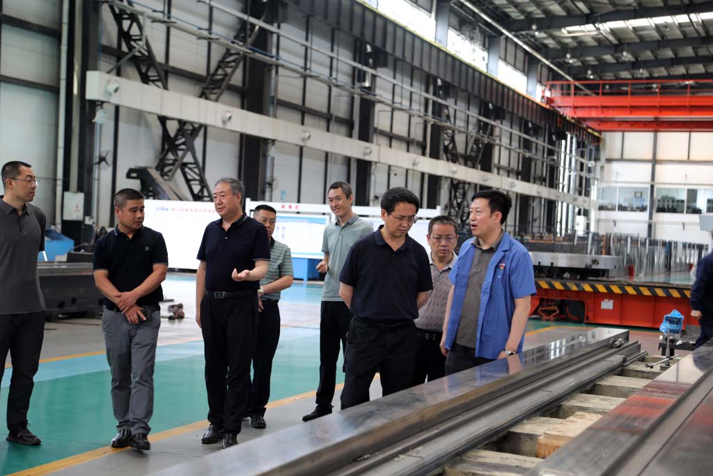 馬海福一行在劉勝陪同下依次參觀了工業(yè)園數(shù)控裝配車間、加工車間、噴漆車間以及青重生產(chǎn)車間,劉勝向馬海福一行詳細(xì)介紹了企業(yè)歷史沿革、市場拓展、產(chǎn)品研發(fā)、人才培養(yǎng)以及科技創(chuàng)新等方面的情況,并就裝配中的數(shù)控產(chǎn)品設(shè)備的技術(shù)細(xì)節(jié)問題和馬海福進(jìn)行了溝通交流。劉勝表示,在收購?fù)昵嘀匾院螅腔鹪诖蟆⒅亍⑻匦驮O(shè)備領(lǐng)域具有了一定的競爭力,未來公司會(huì)加大研發(fā)投入和科技創(chuàng)新,開發(fā)出符合市場要求的產(chǎn)品,不斷在大、重型機(jī)床領(lǐng)域開疆拓土。
